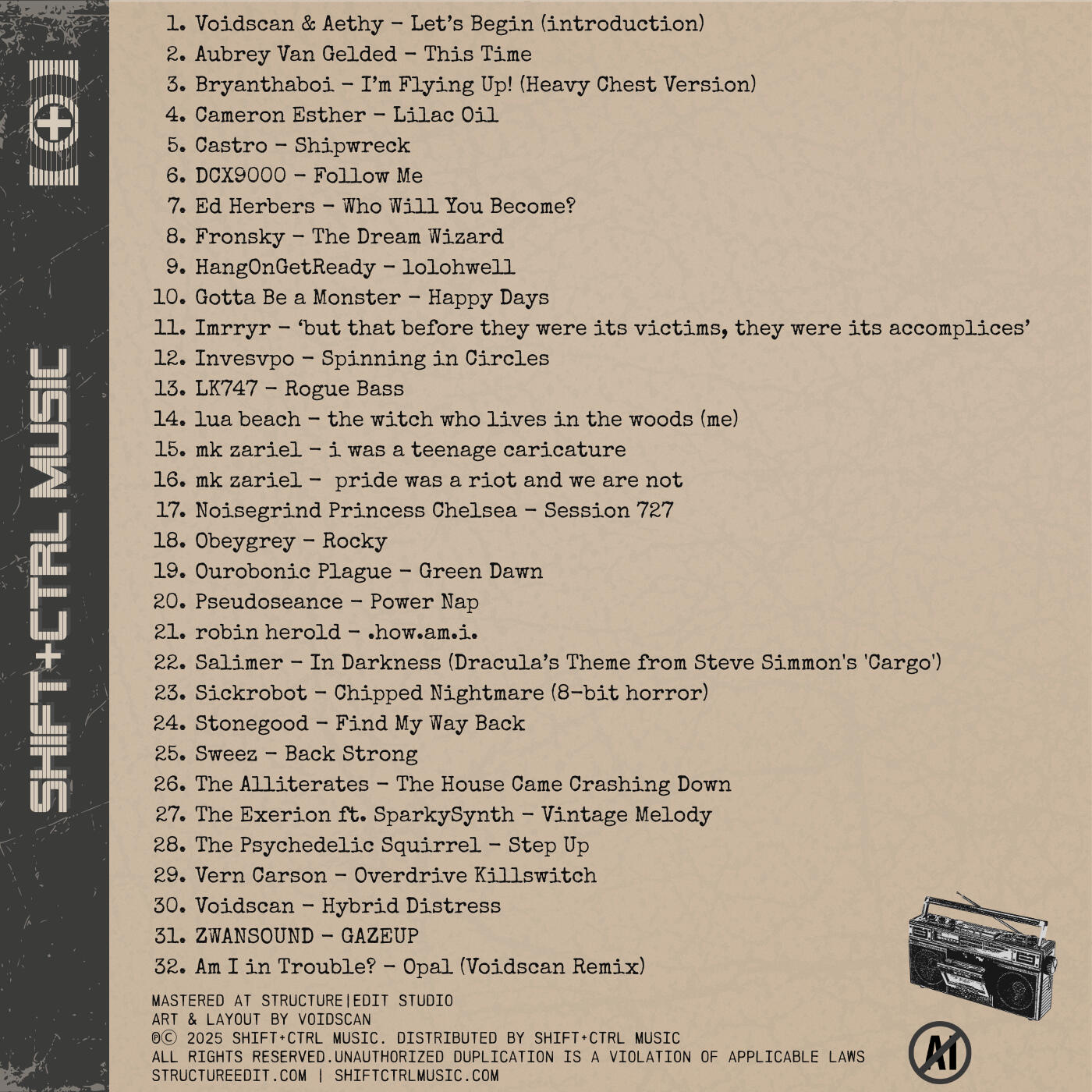 This SHIFT+CTRL Music Compilation is more than just a collection of tracks, it’s the first statement from the SHIFT+CTRL Music family.Bringing together artists from across the world, this release captures the core of what SHIFT+CTRL Music represents: independence, experimentation, and fearless sound design.From pulsing house and dubstep anthems to glitch-heavy electronic textures, from ambient dreamscapes to high-energy rock tracks, this compilation reflects the diverse sonic palette each artist contributes. From their own unique vision this is a snapshot of a community that thrives on innovation.The compilation underscores SHIFT+CTRL’s mission: to give artists creative freedom, direct-to-fan connections, and a platform where genre walls collapse and new movements begin.The theme of this compilation is music that captures the feeling of origins, fresh starts, and sonic emergence.Whether you’re discovering these artists for the first time or have been following from their early days, this compilation is an entry point into a growing collective of sound explorers. Press play, dive in, and experience the future of independent music.